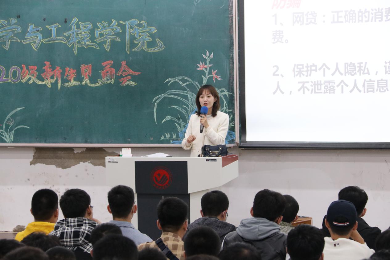 于10月8日18时30分在北湖校区西区西阶101、102教室召开了2020级新生安全教育会。会议由2020级新生辅导员庄园主讲,2020级全体新生参加了本次会议。