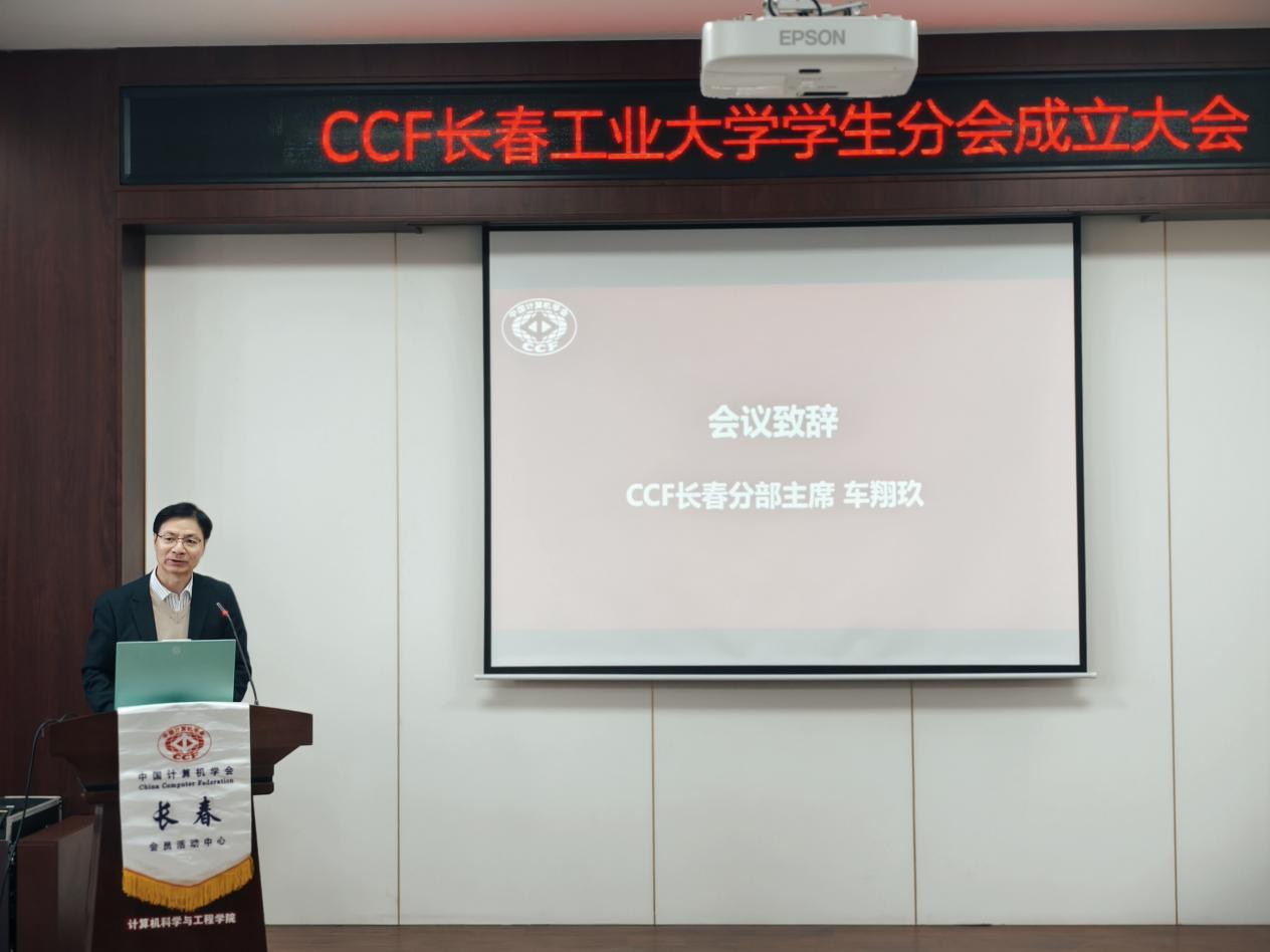 发展实际,搭建学术交流与实践创新平台,助力学生成长成才。CCF长春分部主席车翔玖教授代表组委会致辞,阐释了CCF学生分会的建设宗旨与发展方向;CCF会员与分部工委主任李贝则详细介绍了CCF的发展历程、组织架构与服务体系,为分会后续运作提供了专业指导。