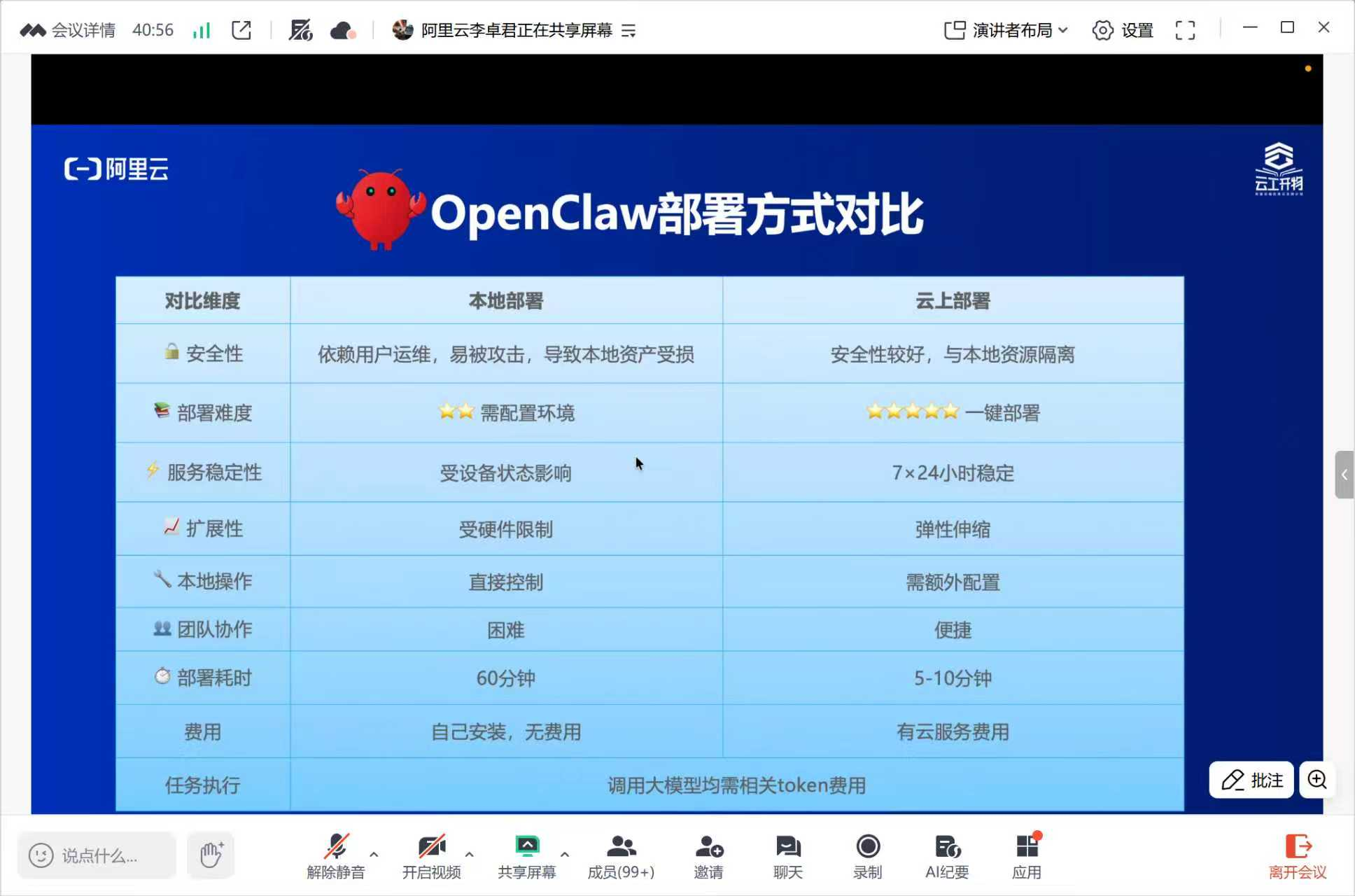 在核心分享阶段,专家逐一演示OpenClaw的云端安全部署全流程,从环境配置、模型对接,到插件装载、权限设置等关键步骤,逐一拆解、细致讲解,并同步解答实操中的常见问题,为同学们提供了可直接落地的学习指导。同时结合行业发展趋势,为同学们的技术学习与职业规划给出针对性建议。